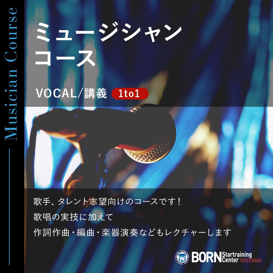 歌唱のVOCAL実技に加えて、作詞・作曲、楽器演奏、レコーディング、和声学、発売プロセスなどのVOCAL応用講義も学べるコースです!